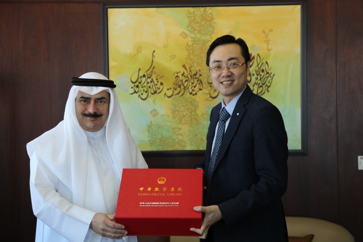 11月21日,駐科威特使館向科威特國家圖書館贈送電子圖書。駐科威特使館臨時(shí)代辦趙亮、科威特國家圖書館館長卡米勒出席贈書儀式。