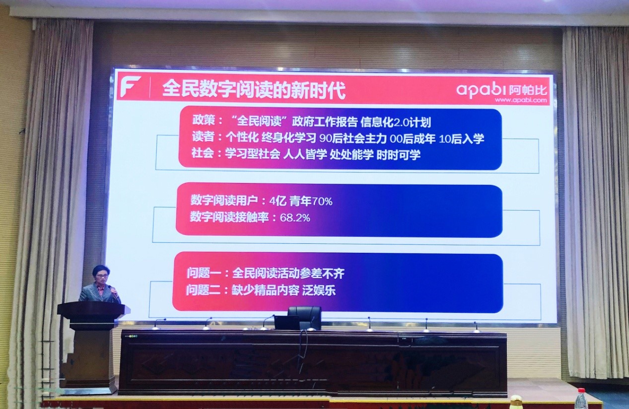 在本次會議上,方正阿帕比經(jīng)營中心魏丕發(fā)表了《新時代的全民數(shù)字閱讀——“讀+”計劃》的主題演講。