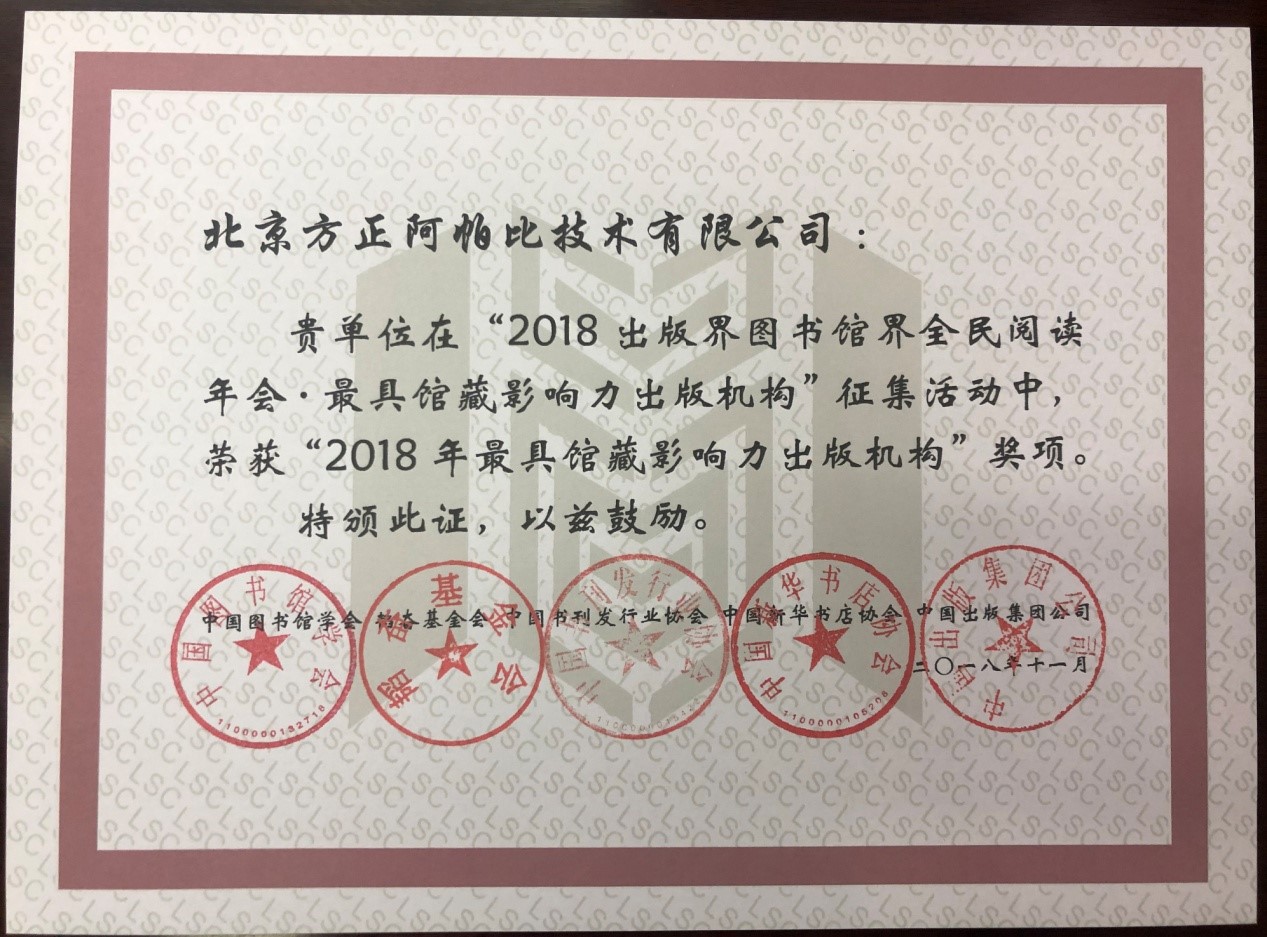 方正阿帕比再獲“最具館藏影響力出版機構(gòu)”
